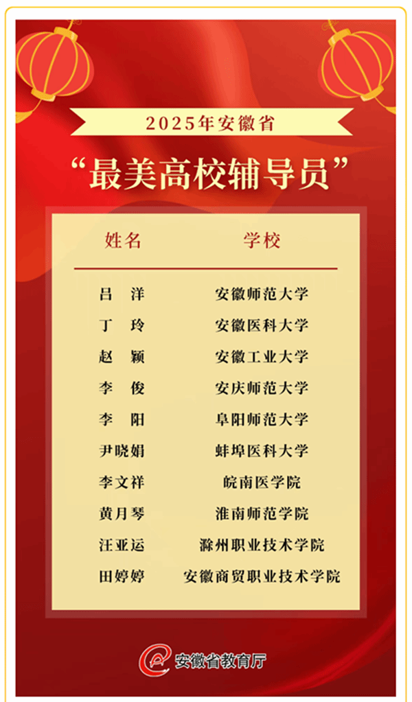 此次尹晓娟老师荣获“安徽高校最美辅导员”称号,是学校长期重视辅导员队伍建设、深化立德树人工作的生动体现。近年来,学校始终把辅导员队伍建设作为人才培养的关键环节,不断完善培养、管理、激励机制,着力打造一支政治强、业务精、纪律严、作风正的专业化辅导员队伍,涌现出一批爱岗敬业、实绩突出的先进典型。
