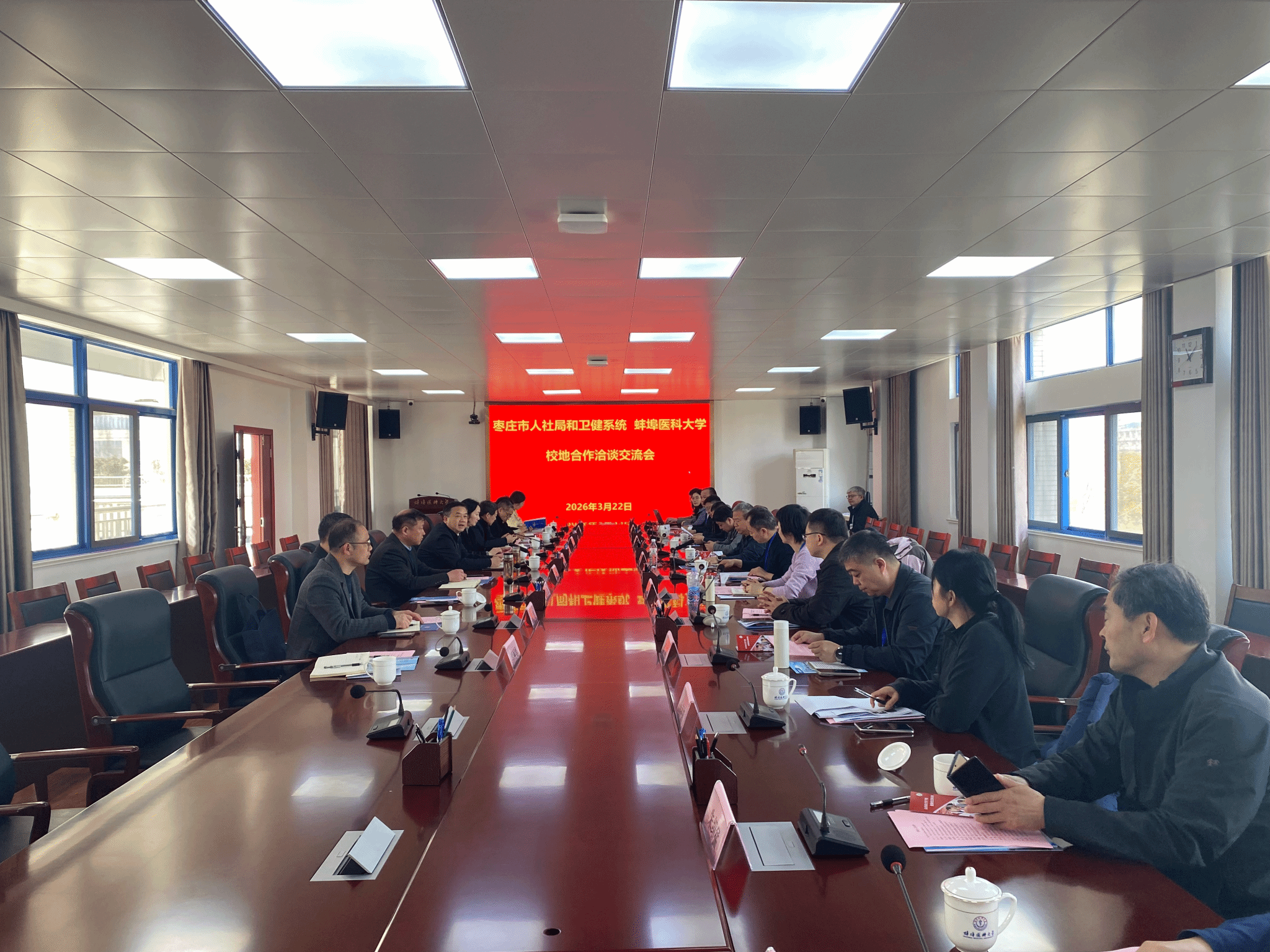 姚强副校长对李可一行表示热烈欢迎,并介绍了学校近年来人才培养、内涵建设以及高质量发展情况。他表示,学校将发挥学科与人才优势,与枣庄市搭建合作桥梁,推动校地深度融合,协作共赢。枣庄市卫健和人社部门领导介绍了枣庄市的就业创业与人才政策以及医疗卫生体系建设情况;各医疗机构负责人介绍了人才需求等情况。我校各学院负责人就毕业生就业创业工作与对方深入交流,精准对接需求。