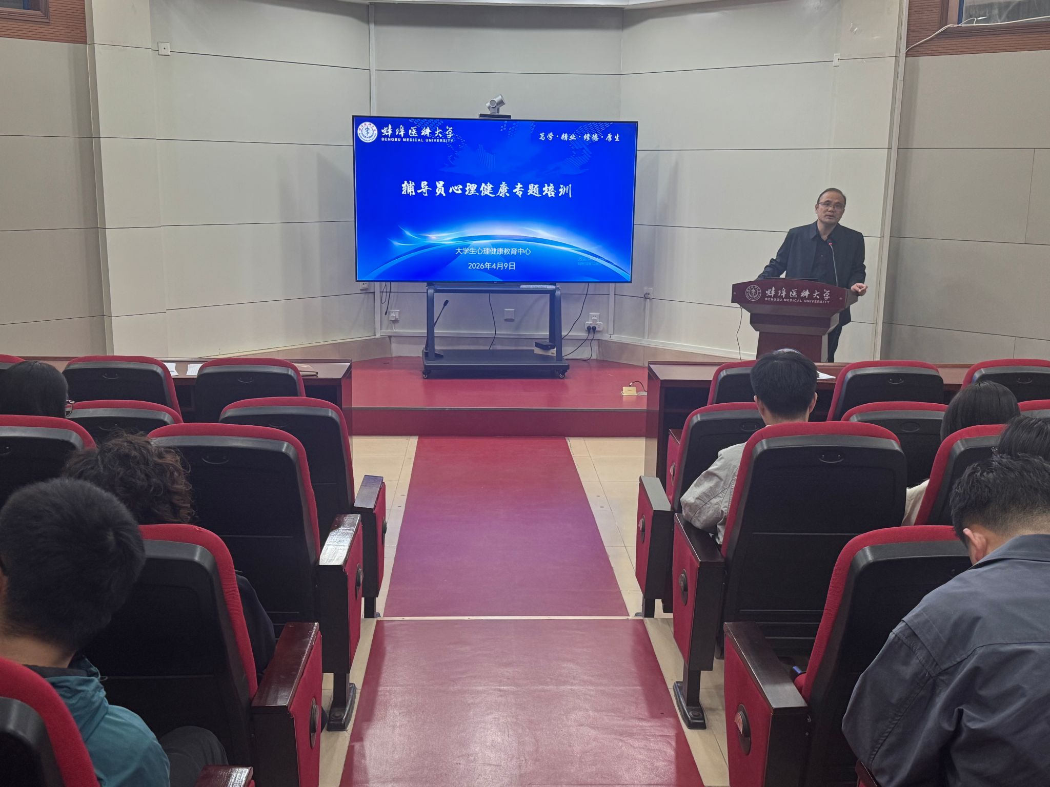 4月9日下午,大学生心理健康教育中心组织开展了辅导员心理健康专题培训,学生处副处长吴涛主持,心理咨询室主任马长征主讲,全体辅导员参加了培训。