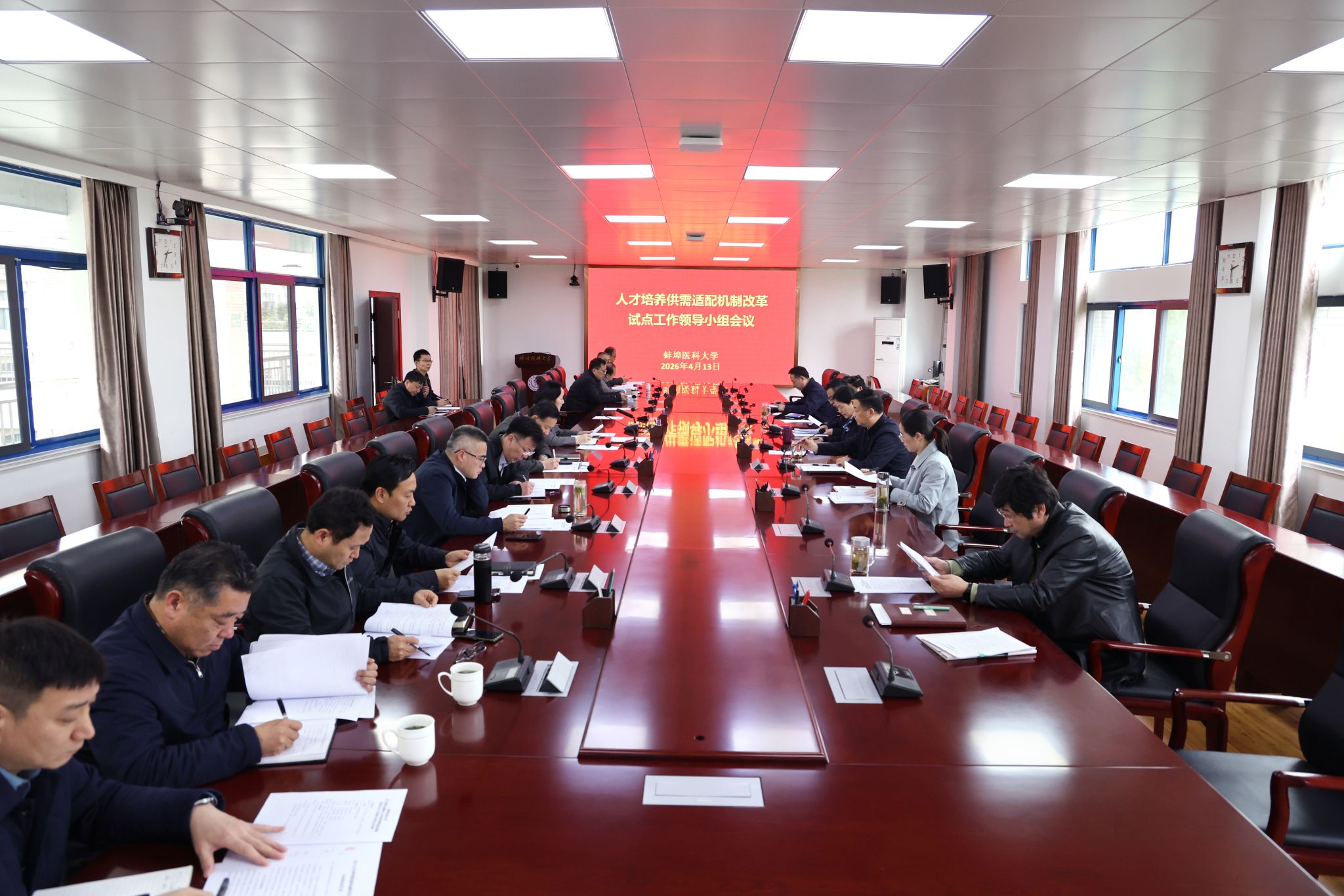 校党委常委、副校长姚强主持会议并总结指出,此次会议进一步凝聚改革共识、明确攻坚路径,一是在前期工作基础上,完善任务台账,总结改革经验,凝练标志性成果,必须不折不扣落实改革任务,探索可复制、可推广的医学人才培养模式;二是聚焦重点任务,认真抓好落实。各部门紧扣任务要求,聚焦供给侧改革,坚持以就业为导向,积极完善招生培养联动,提升人才培养质量;三是学生处牵头抓总,协调推进重点任务的落实,为我校高质量推进人才培养供需适配机制改革试点、服务安徽省医学事业高质量发展奠定坚实基础。